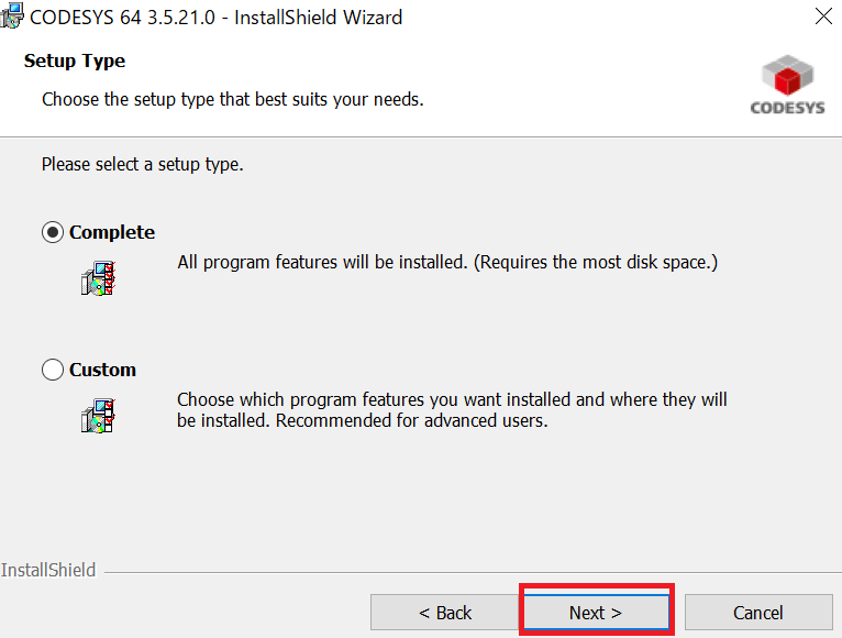 • Setup Typeはデフォルト設定(Complete)のまま「Next」ボタンをクリック