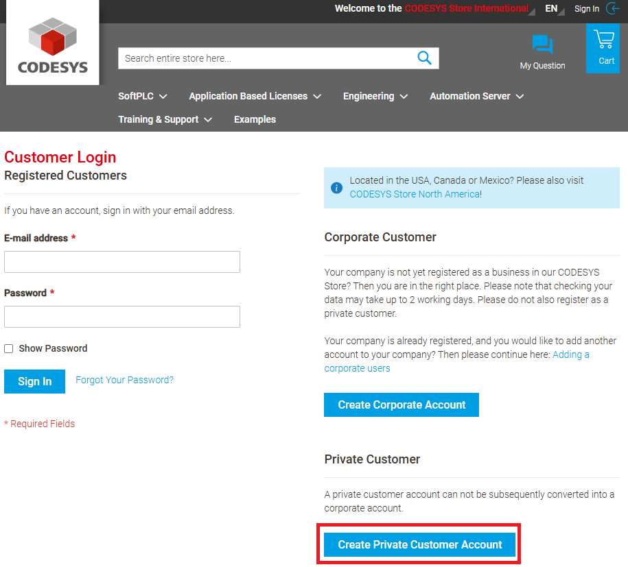 CODESYSをダウンロードするには、「CODESYS Store」という専用サイトへの登録が必要です。
