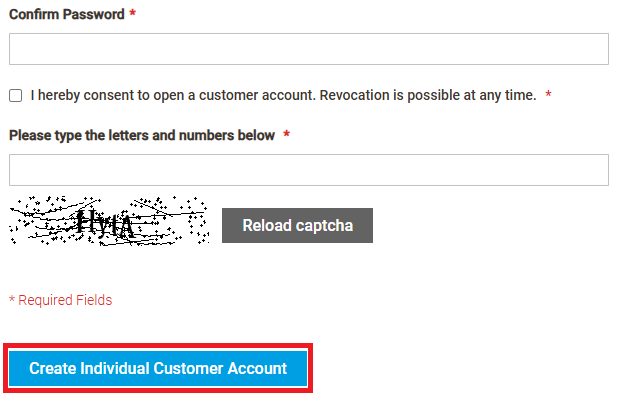 • 必要事項を記入し、「Create Individual Customer Account」をクリック